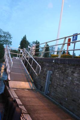 connected to the shore by gently sloping ramps like this, fitted with metal